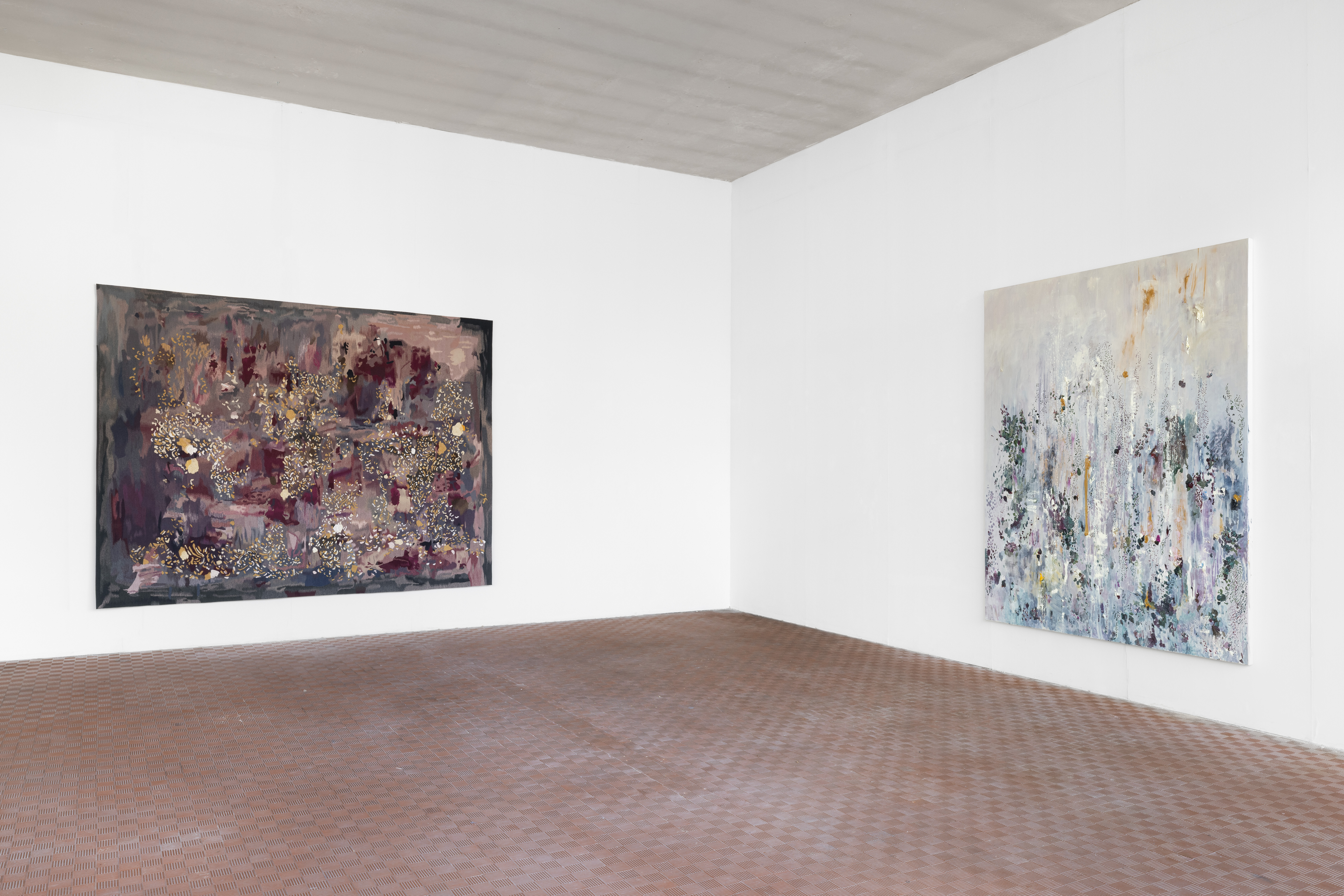 Marina Rheingantz rielabora la pittura di paesaggio in composizioni che combinano la struttura formale di motivi e campiture di colore con segni gestuali e istintivi, guidati da un archivio personale di eventi meteorologici, ricordi, fotografie e luoghi. Le sue tele generano ampi spazi immaginari, dissolvendo la topografia in elementi minimi e allusivi. In queste opere ampie e atmosferiche, la superficie pittorica prevale sulla nitidezza dell'immagine, dando origine a una spazialità evanescente e oscillante.