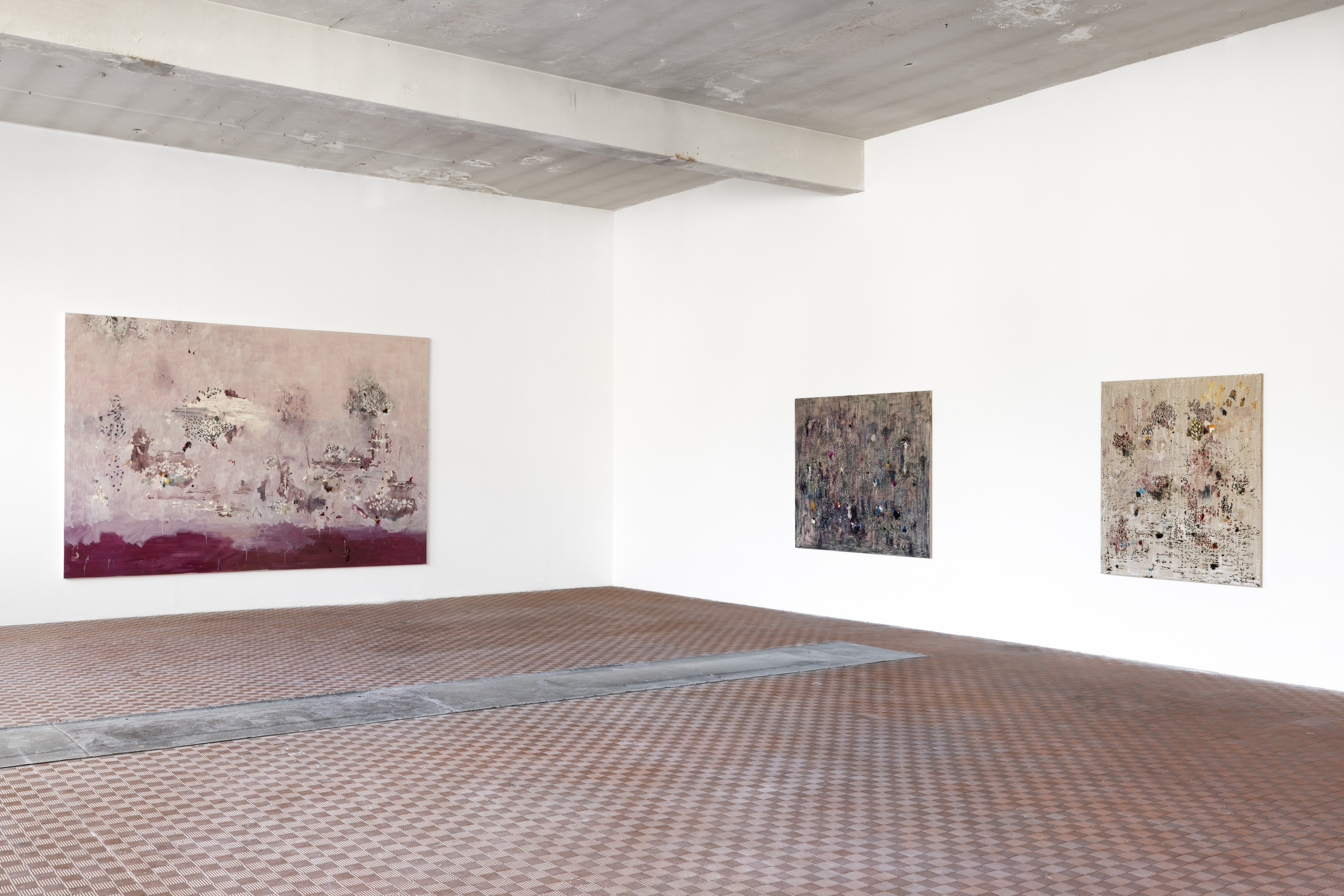 In her paintings, Marina Rheingantz expresses herself through color and gesture, allowing shifting spaces and atmospheres to emerge from the surface of the canvas. Thick patches of oil paint appear in their physicality like the warp of textile surfaces and the weave of a landscape. Her compositions strip away recognizable reference, retaining landscape only as a structural framework for abstract horizons and imagined depths.