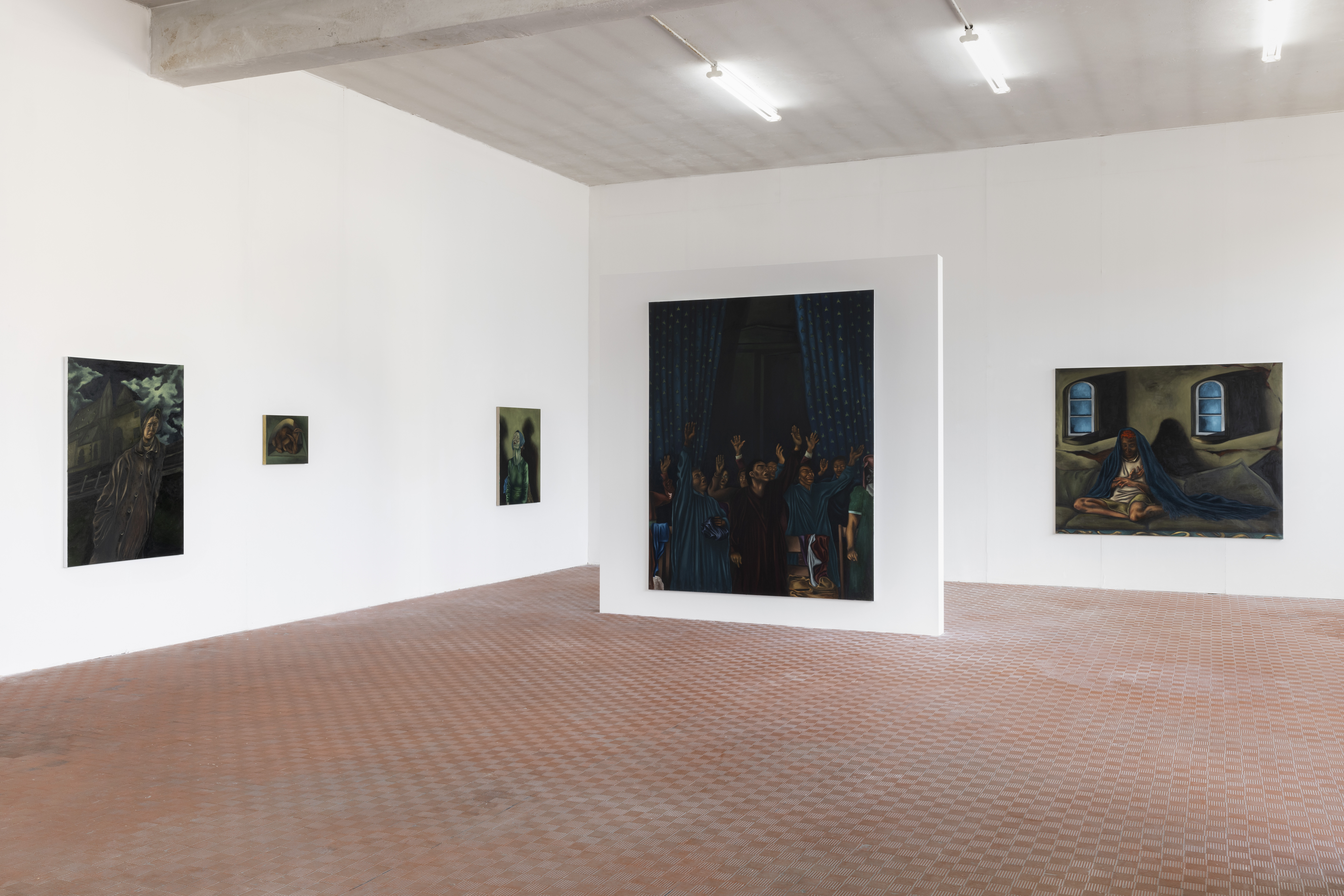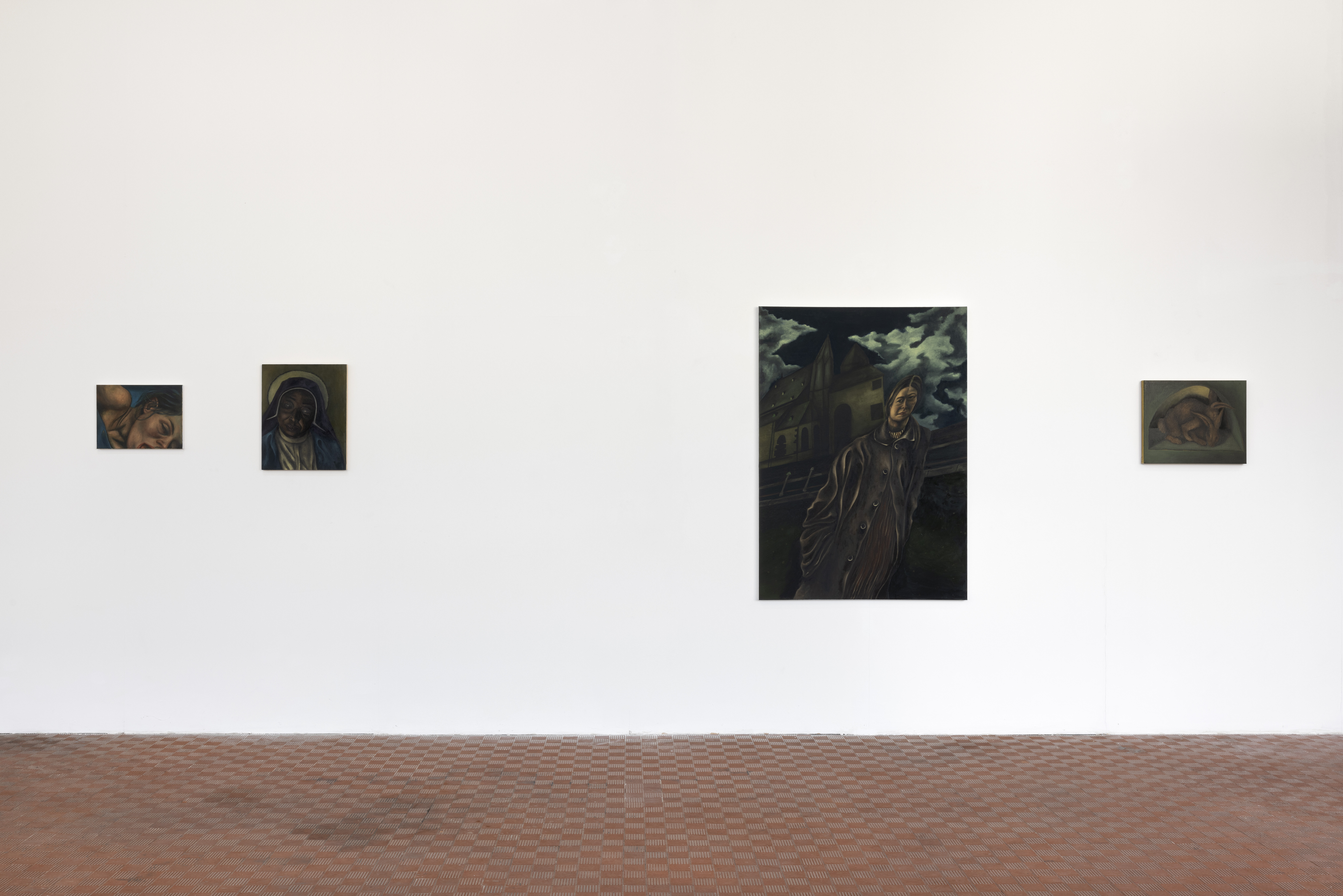 The history of painting and the relationship with faith—conceived in its transformative and social sense—are the central themes around which Hammond’s paintings take shape, most of which were conceived specifically for the exhibition between 2024 and 2025. The works infuse the space with visionary and surreal atmospheres: dark colors, distorted bodies, and formal solutions suspended between corporeal and emotional fragility are accompanied by themes such as motherhood, religion, hope, and individualism.