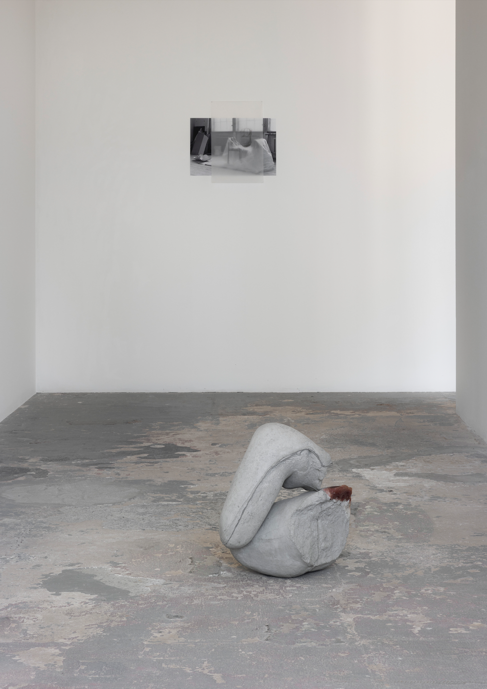 Through a complex installation titled Forager – Lunch (2020–2026), Yu Ji (1985, China) unites diverse elements dispersed throughout the exhibition space, including two sculptures, black-and-white photographic prints overlaid with drawings, and a video displayed on an old television set. The work takes the form of a choreography—a narrative exploring the ways we inhabit the world—imparting the materials with an atemporal depth that paradoxically contrasts with the traditional concept of sculpture.