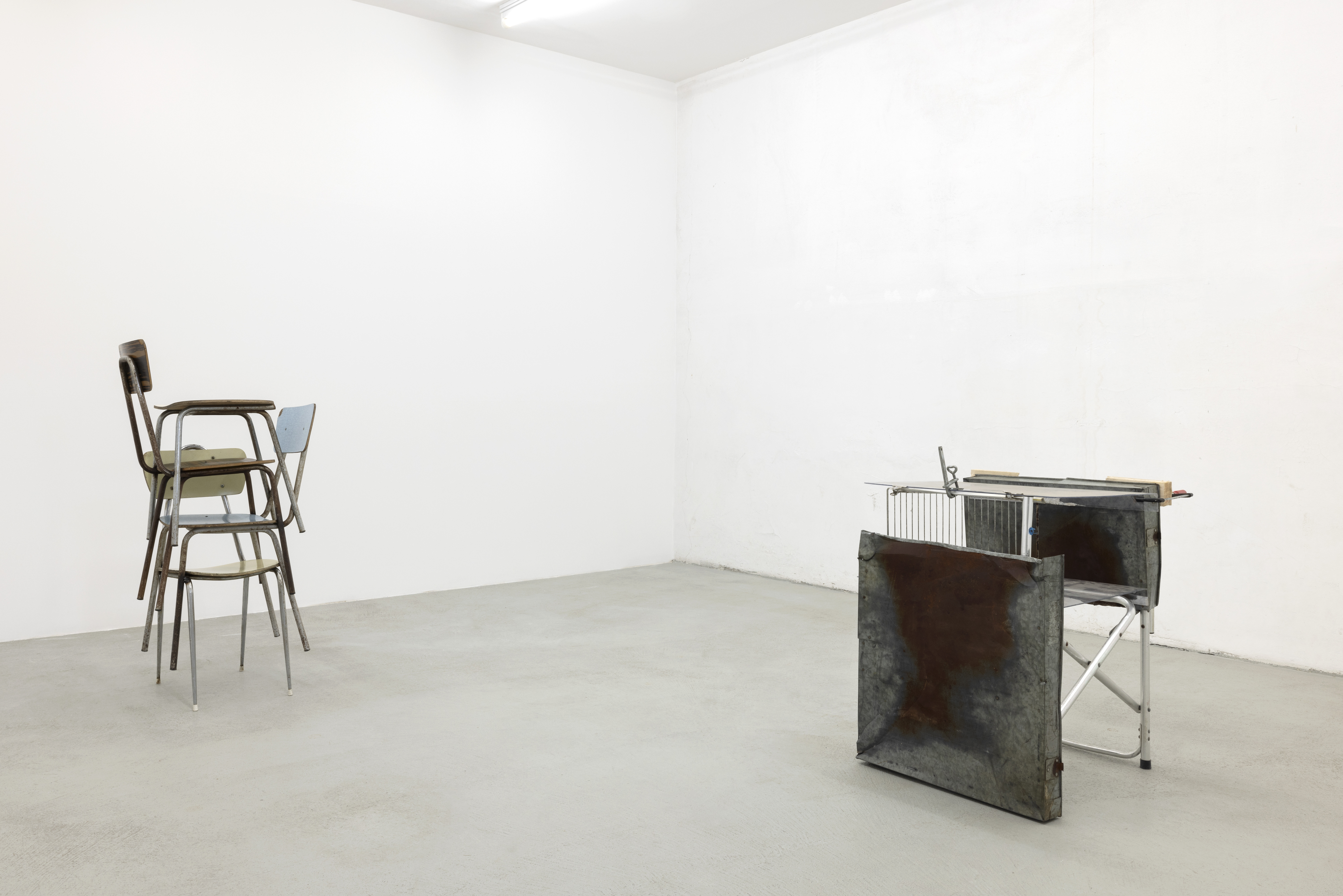 La pratica artistica di Costabile si colloca tra scultura e installazione, con una ricerca che prende forma attraverso l’assemblaggio, a comporre paesaggi e immaginari inediti. In mostra cinque opere, di cui quattro nuove produzioni, realizzate con materiali di recupero – principalmente scarti di metallo provenienti da stabilimenti industriali, garage, raccolti per strada o nei cassonetti – che l’artista riassembla senza alterarne l’aspetto originario, limitandosi a ricontestualizzarne la funzione.